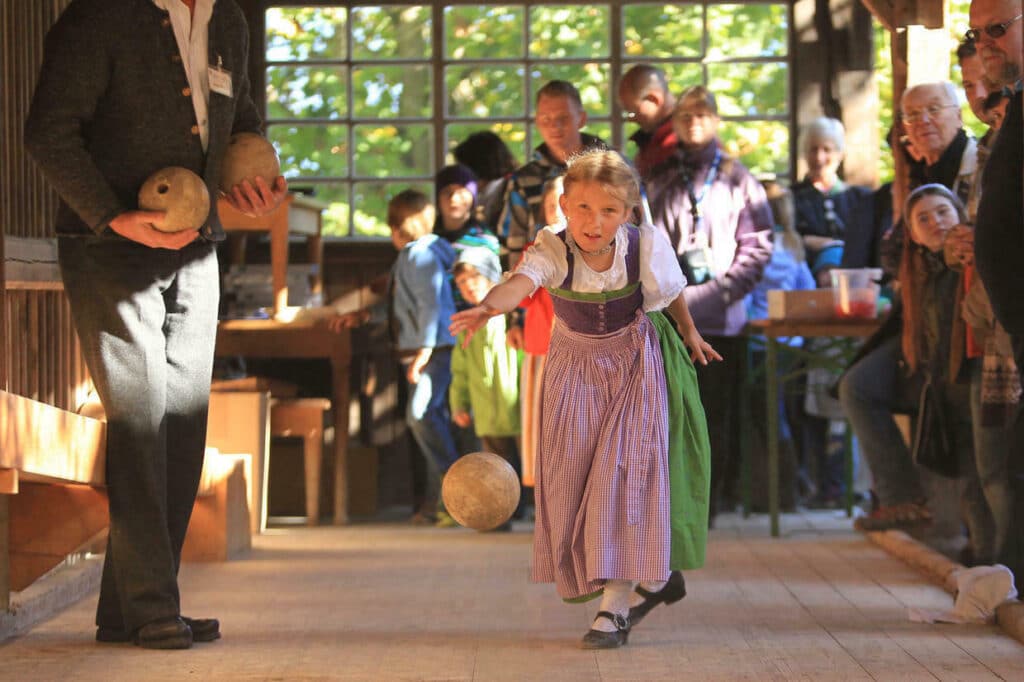 Lust auf eine Kegelrunde wie anno dazumal? Unsere über 100 Jahre alte Kegelbahn aus Staudham lädt zum Spielen unter freiem Himmel ein – ein echtes Highlight für Gruppen und Vereine, die Geschichte mit sportlichem Vergnügen verbinden wollen.